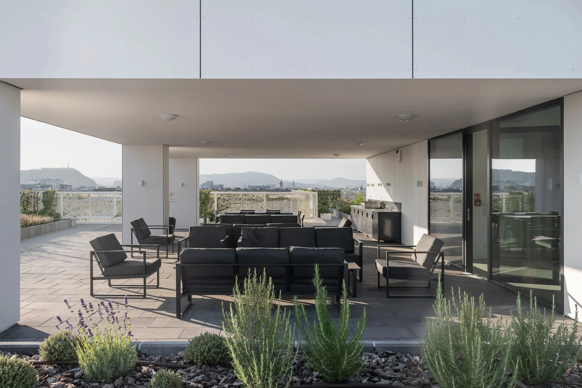 A sűrűn burkolt városi környezettől merőben eltérő világot alkotva született itt meg 500+ lakás a hozzá tartozó szükséges funkciókkal (parkolás, kerékpár tárolás, csomagpont, portaszolgálat, stb). Ezeken felül célunk volt valós közösségi terek létrehozása is: fitness, "nappali", co-work iroda, tetőkerti bar - ezzel is kiemelve a Metrodom Green-t a szokványos lakóparki környezetből.