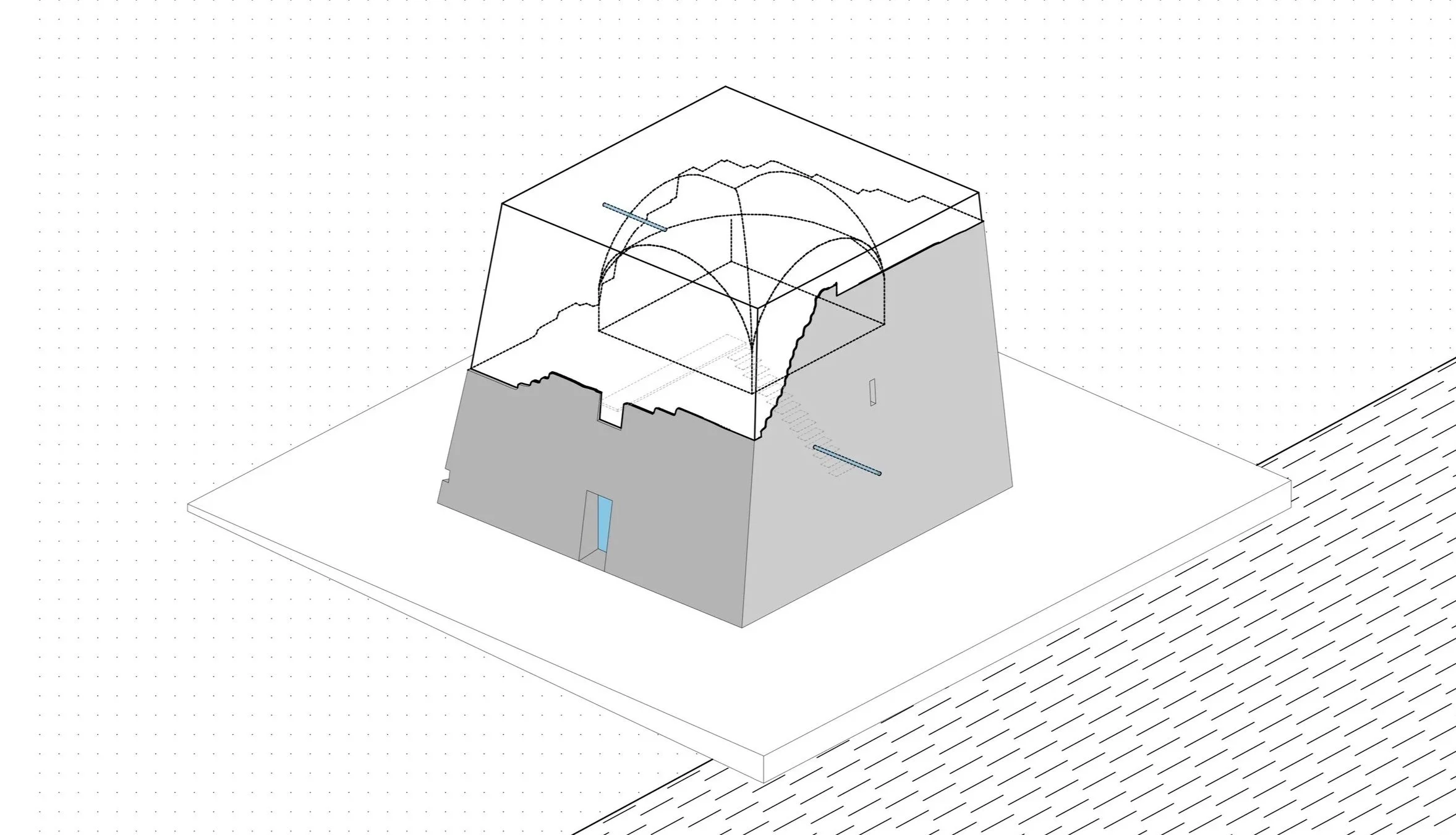 A rom rekonstrukciójának tervezését az ehhez hasonló tornyok elemzésével kezdtük, különös tekintetet fordítva formájukra és kialakításukra. Célunk az volt, hogy a torony belsejében teljes sötétséget teremtsünk. Az egyetlen nyílások az bejárati ajtó és két kisebb rés – az egyik a földszinten, a másik a felső szinten. Ezek nem csupán nyílások: a koncepciónk fő elemei,