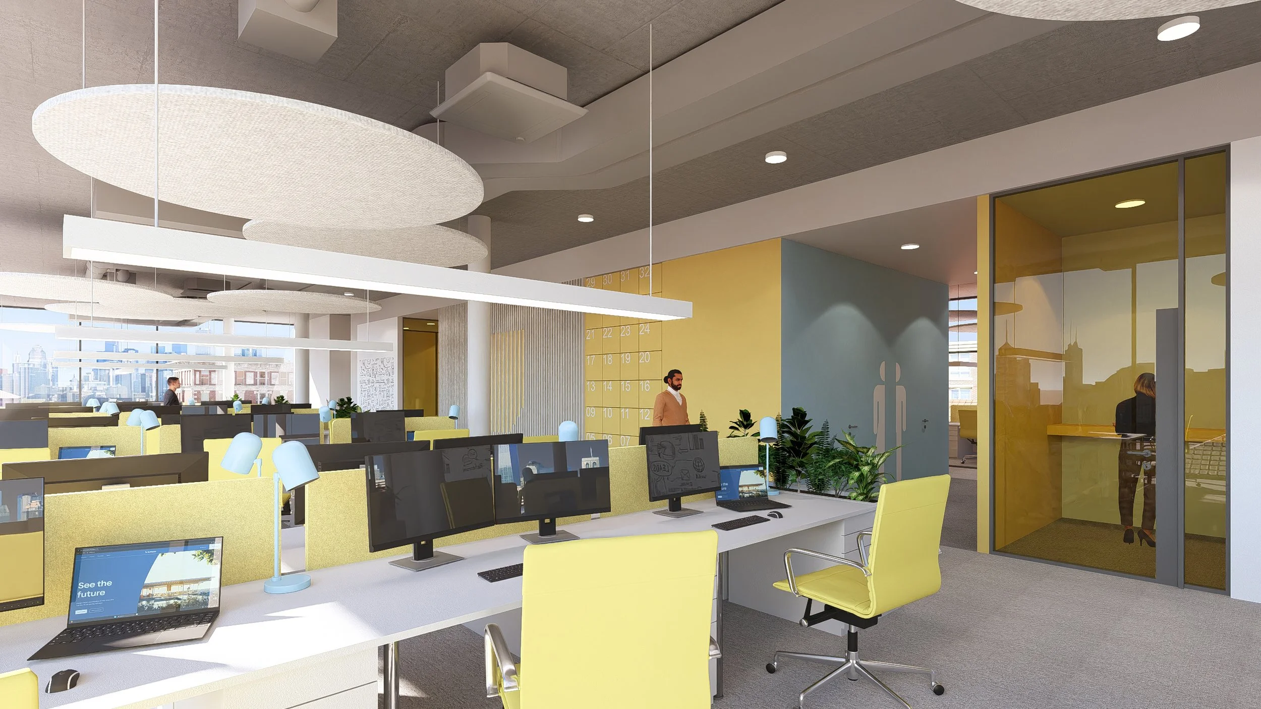 Az anyaghasználat és színpaletta kialakítása során a vállalati arculathoz igazodva egy barátságos, inspiráló és hatékony munkakörnyezet megteremtése volt a cél, ami egyszerre reprezentatív és harmonikus. A gondosan megválasztott belsőépítészeti elemek olyan atmoszférát teremtenek, amely támogatja a mindennapi munkavégzést és pozitív hatással van a használók jóllétére.
